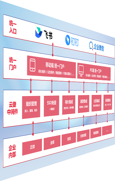 对协作平台提供支持服务,,,支持企业应用与协作平台对接,,,包含组织同步、、、消息集成、、、、待办集成等。。。支持目前主流的协作平台:钉钉、、、企微和飞书。。。。